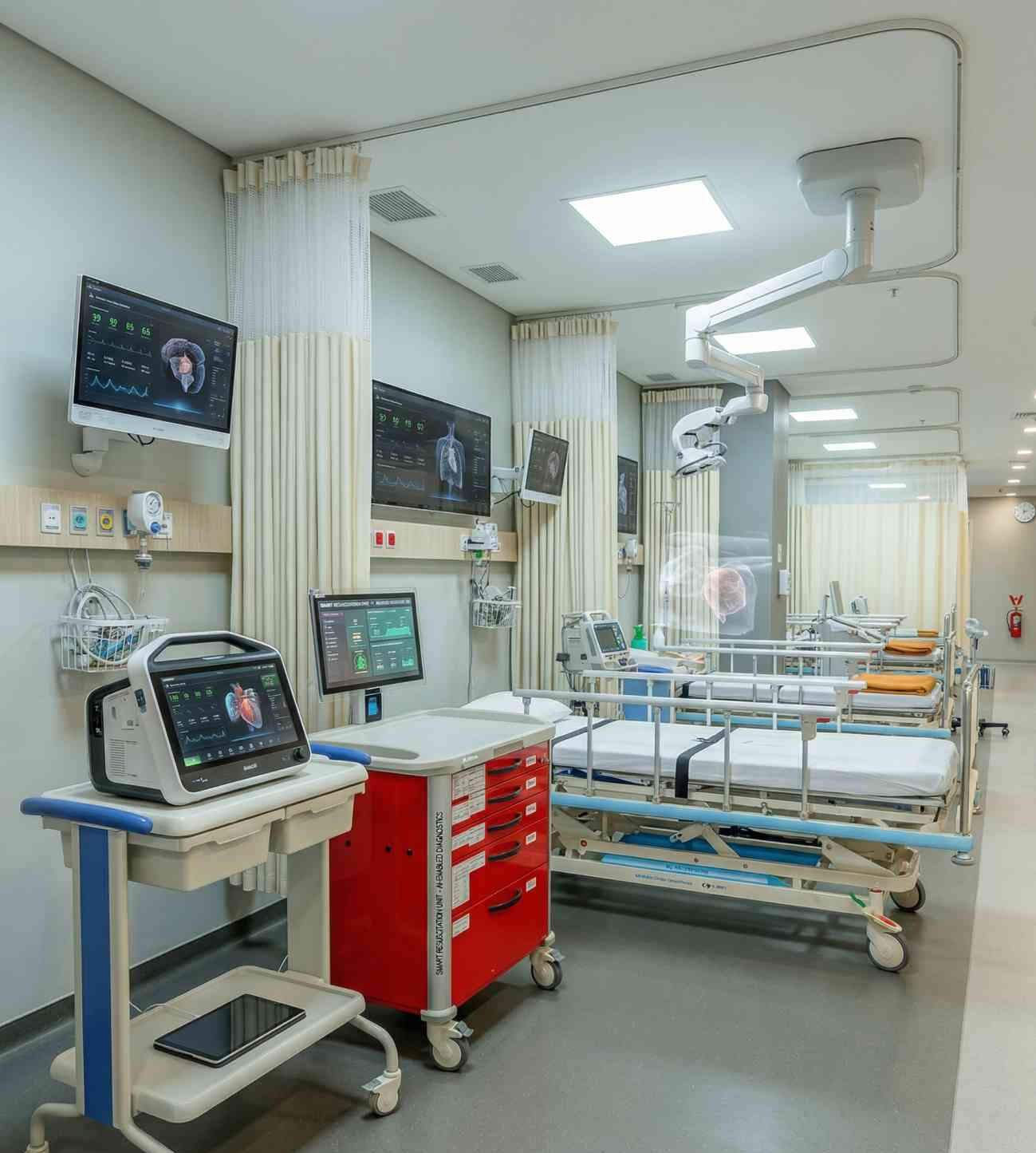 Ruang operasi hybrid yang menggabungkan meja bedah modern dan sistem pemindai pembuluh darah (Cathlab) dalam satu ruangan, dokter dapat memantau aliran darah secara langsung selama operasi, sehingga tindakan menjadi lebih akurat waktu lebih efisien